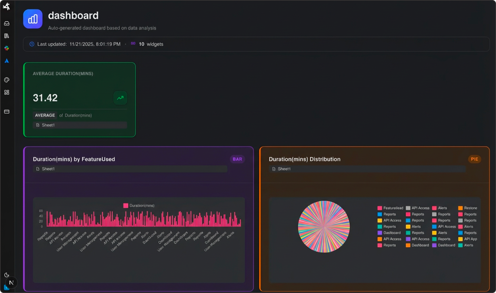 Instant Dashboards automatically transform real-time data into clear, dynamic visuals for rapid insights.